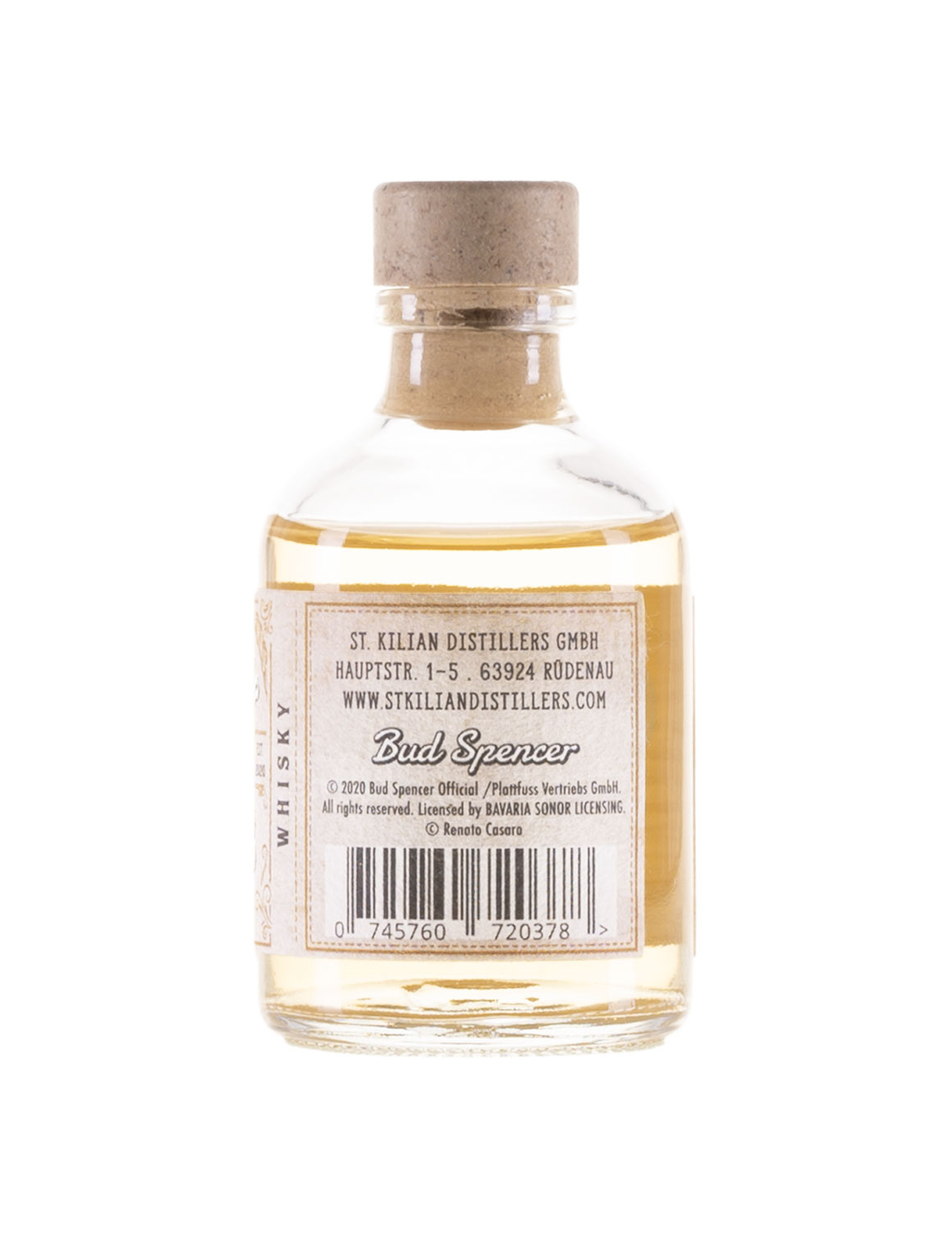 Bud Spencer kämpft furchtlos für Recht und Gerechtigkeit – und gönnt sich danach einen Whisky: Ein Blended Whisky mit Amarone-Fassnoten im Bud-Spencer-Stil und in St. Kilian Qualität, vermählt mit dreifach destilliertem Irish Whiskey aus Bourbonfässern der Great Northern Distillery in Dundalk.